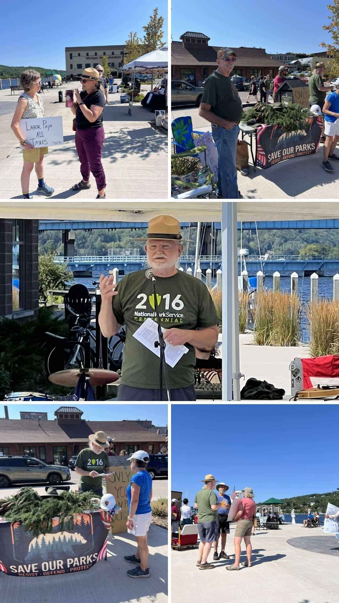 Below are a few pictures from Brian Hoduski of the Copper Country National Park Service retirees. This group spoke on the need to save our national parks amidst the funding cuts and firings of NPS employees by the Trump administration.