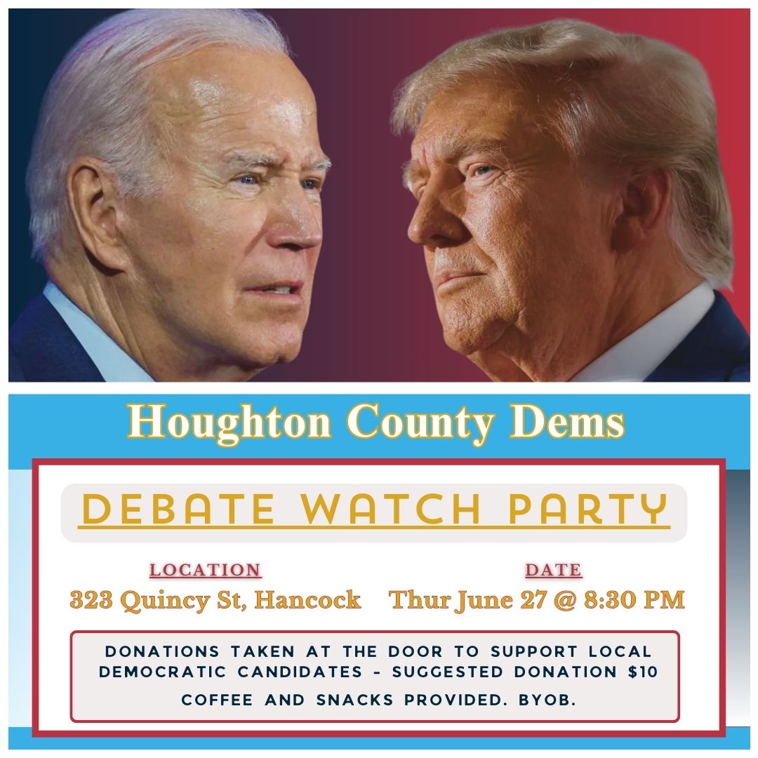 Join us this Thursday, June 27th for a Debate Watch Party and fundraiser. This promises to be a great opportunity to meet with your fellow Democrats and to support our local Democratic candidates.