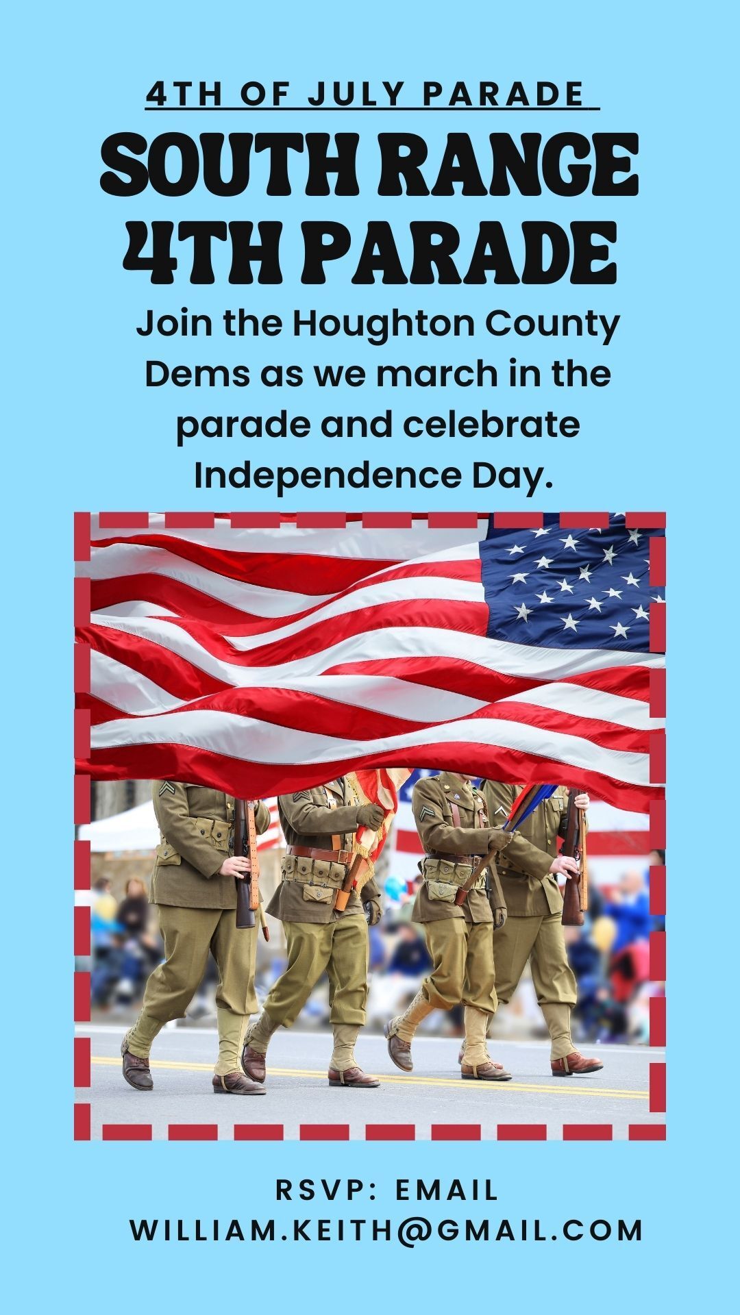 Join us this Thursday, July 4th as we celebrate Independence Day and support local Democratic candidates at the South Range 4th of July Parade.