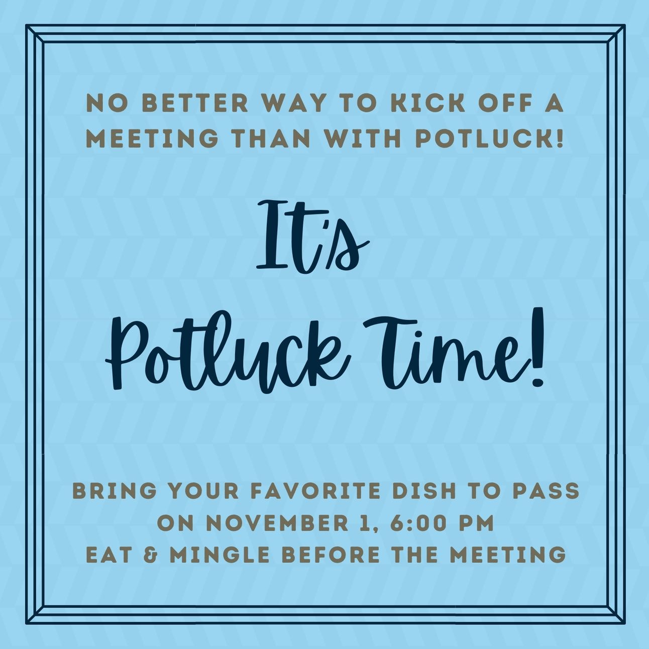 So, starting with the next meeting on November 1st we’ll be having a potluck! You’re encouraged to show up at 6 PM, one hour ahead of meeting time, with a dish to share - whether homemade or store bought - and enjoy some quality time with your fellow Dems before we settle down to business at 7. And don’t worry, if you’re not a good cook and don’t have time to shop, we’d still love for you to stop in and enjoy some food and conversation.