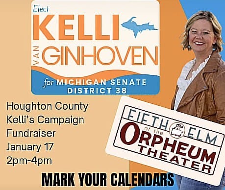 Mark your calendars for this fundraiser by the Kelli van Ginhoven campaign. January 17th from 2 to 4 PM at Fifth & Elm in Hancock.