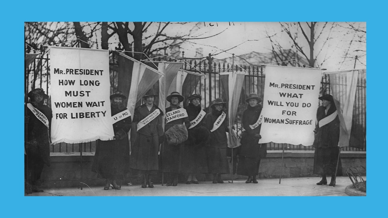 Nicknamed the “Silent Sentinels” these women suffragists picketed in front of the White House in 1917. 168 such picketers were arrested on July 4, 1917 and imprisoned, only to be released a few months later under increasing public pressure.
