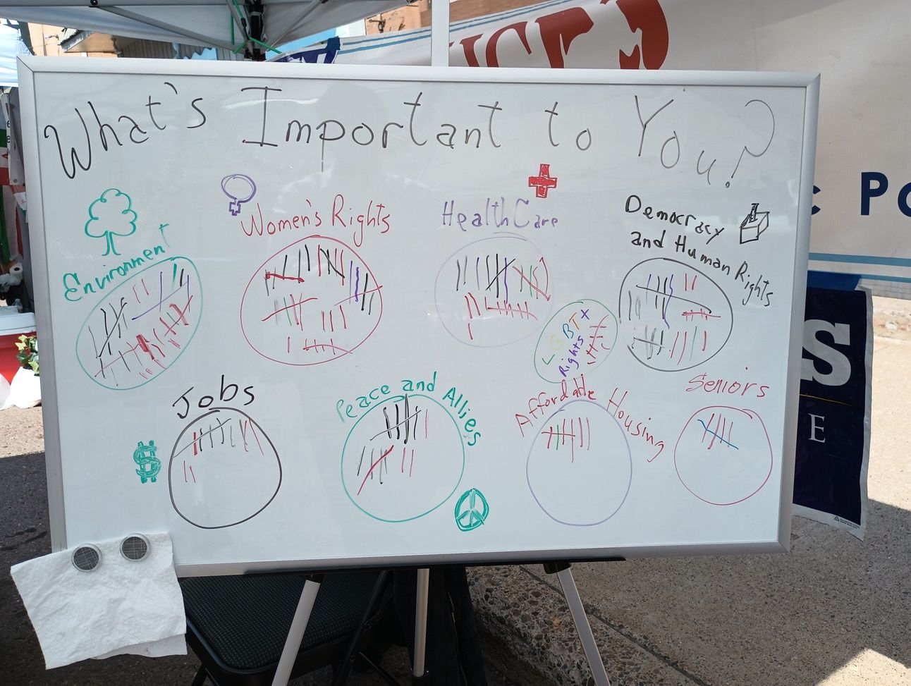 Our table also featured a survey board, an idea we’ve borrowed from one of our fellow County Party groups in Michigan. Check out the survey results in the photo below.