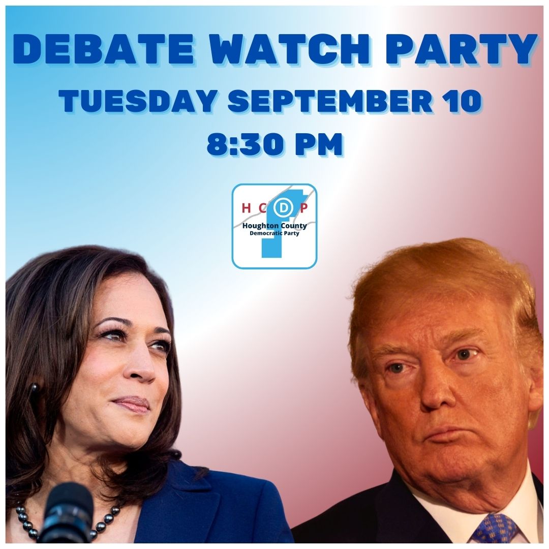 Join us next Tuesday, September 10th for a Debate Watch Party at our HCDP headquarters at 323 Quincy Street in Hancock. As with our previous Watch Party we’ll be taking donations to support our local candidates. Suggested donation - $10. Coffee and snacks provided. BYOB.